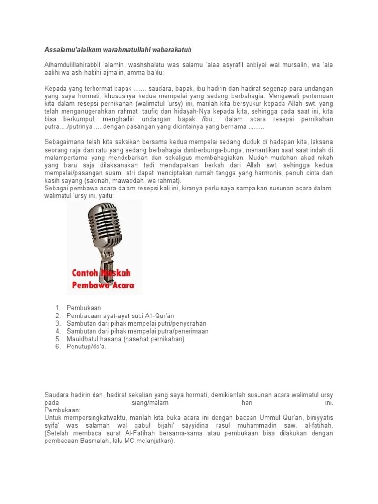 Setiap acara pasti memiliki susunan acara, termasuk dalam pernikahan #8. Pada kesempatan kali ini kami akan memberikan informasi tentang '' contoh sambutan keluarga ac. Contoh naskah mc pemandu acara. Berikut ini adalah penutupan acara olahraga yang diucapkan oleh kepala dinas pendidikan sumut dalam acara olah raga ,semoga ini dapat berguna untuk anda : Kata sambutan acara lamaran atau pernikahan how to the.